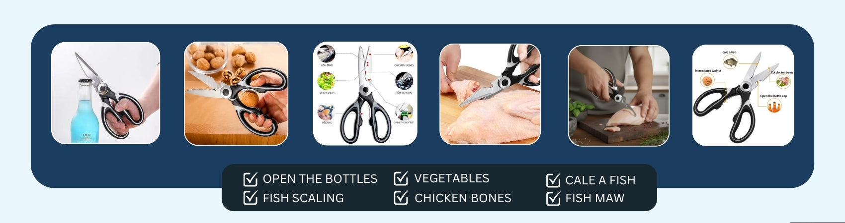 No more switching between multiple tools. Whether you're a home chef, a busy parent, or just want to make kitchen prep faster and safer, these scissors are built to save your time, effort, and space.